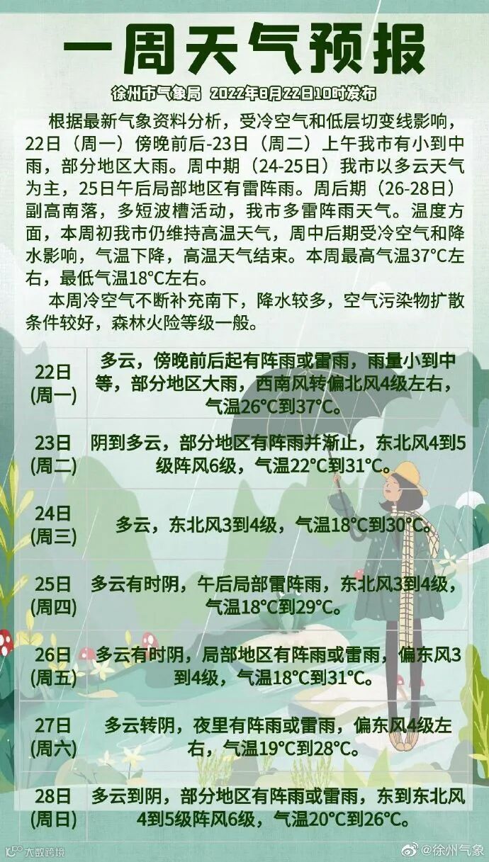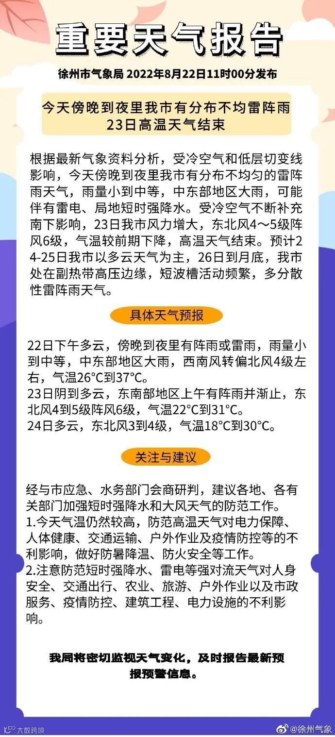 徐州市气象局2022年8月22日发布: