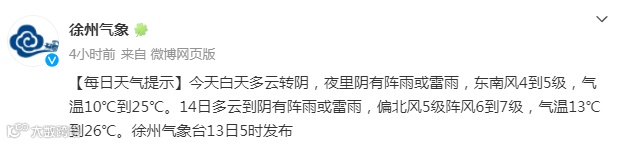 根据徐州气象最新预报