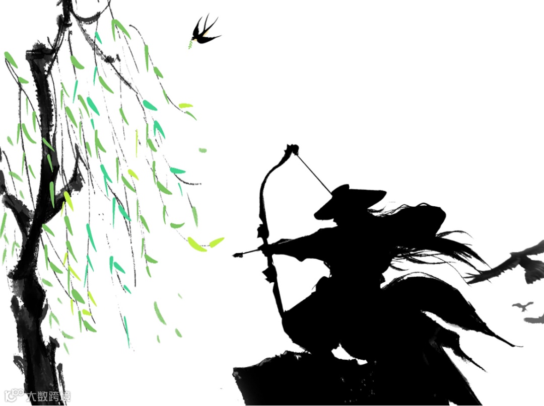 射柳是一种练习射箭技巧的游戏。据明朝人的记载,就是将鸽子放在葫芦里,然后将葫芦高挂于柳树上,弯弓射中葫芦,鸽子飞出,以飞鸽飞的高度来判定胜负。