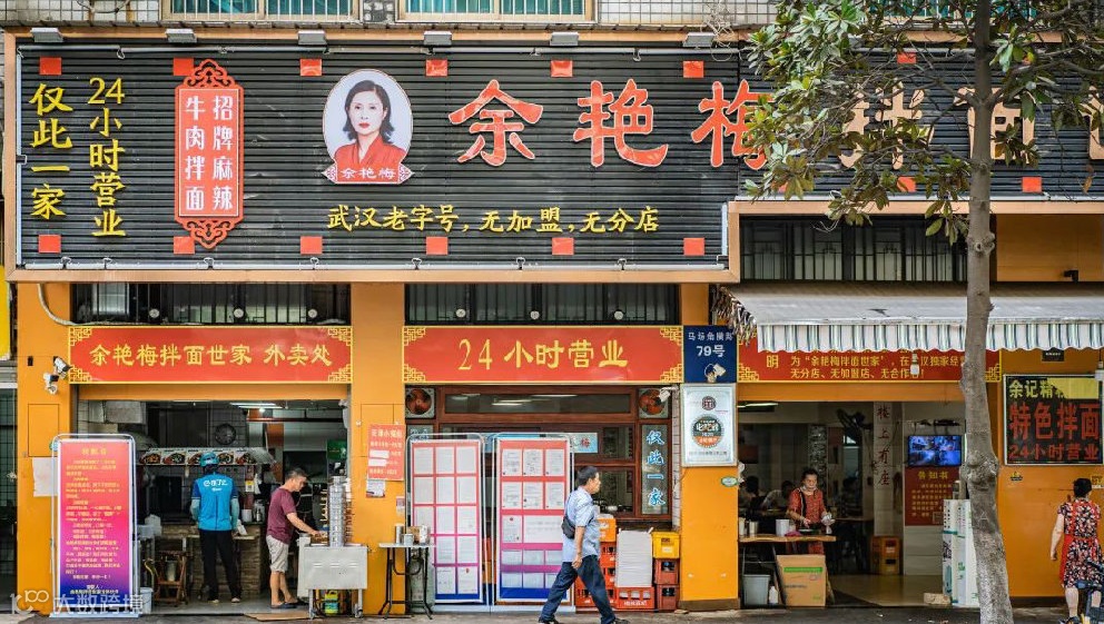 24小时营业,仅此一家,别无分店……位于武汉市江汉区马场角路的“余记精粉世家”凭借独特的经营方式成为网红打卡地。近日,这家开了13年的店铺更名为“余艳梅拌面世家”。从店外摆放的告知书可以看到,2011年入驻大众点评的“余记精粉世家”也已经下架。