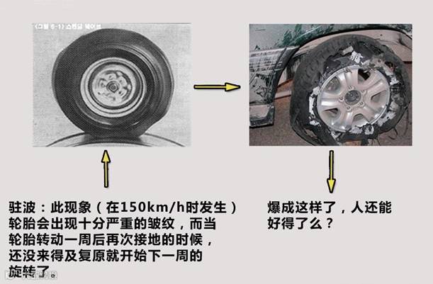 轮胎主要是由高分子复合材料构成,温度升高会加速橡胶老化。汽车高速行驶时,会使整个轮胎的温度升高,从而导致胎面磨损加剧,轮胎都有其设计的临界速度,当高速行驶达到这一速度时,轮胎就会出现“驻波”现象,这就是该轮胎的“临界速度”,如果在此条件下继续使用,轮胎则会有发生爆裂的危险。所以安全行驶,不要超速。例如上图速度级别W,对照表格,最高速度为270km/h。