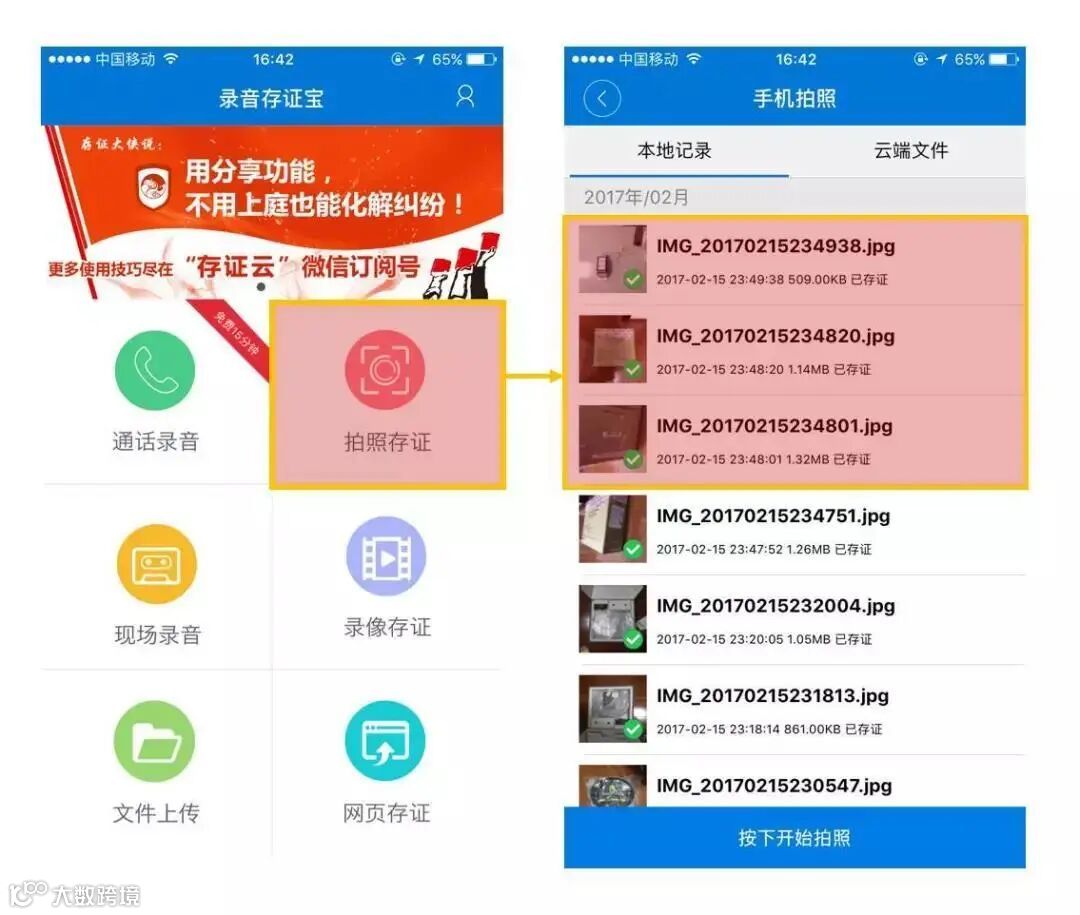 最好能在拍摄后同步将拍照人员、相关在场人员、日期等相关信息记录后第一时间保全固化,进行云存。
