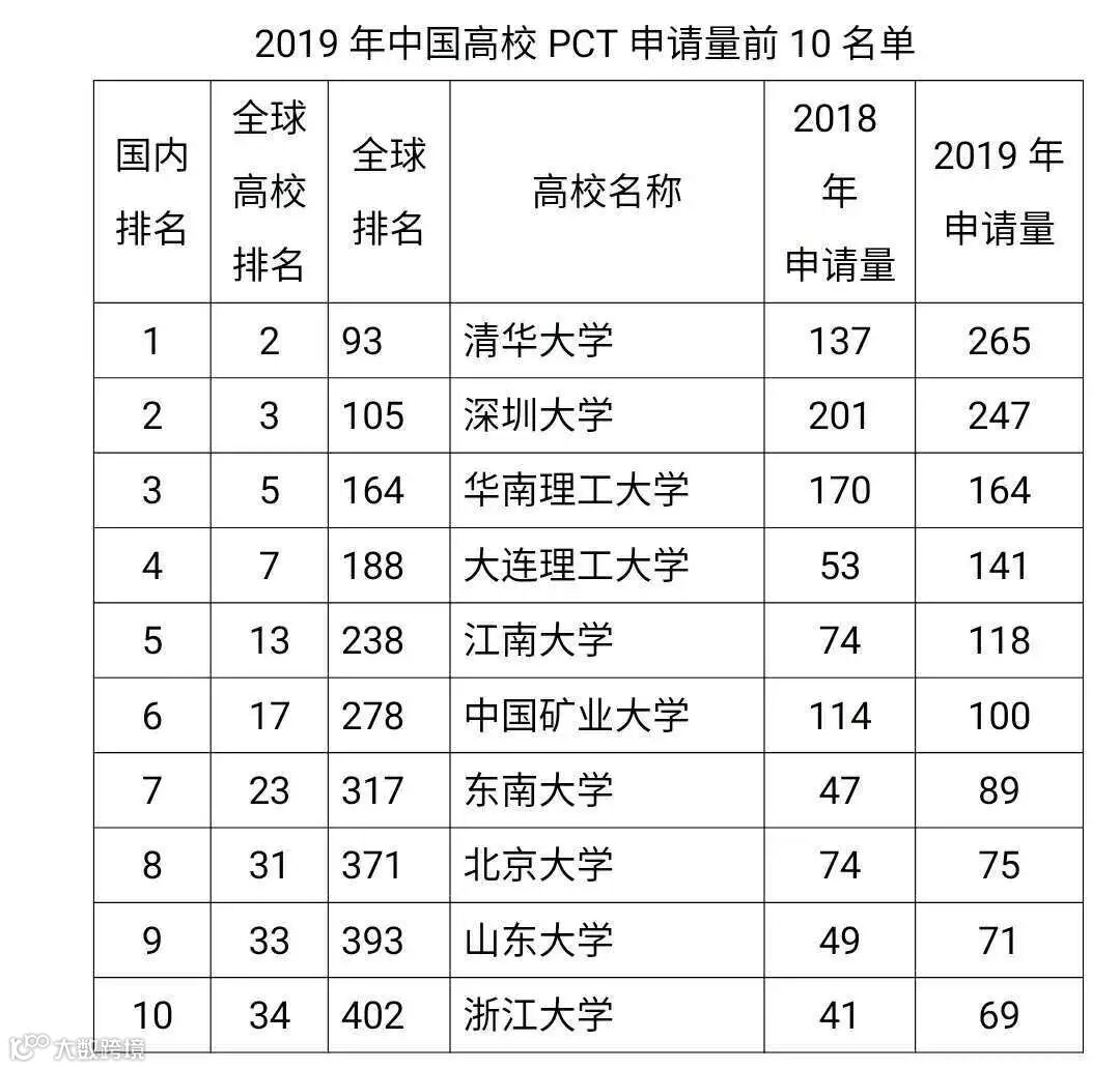 注:以上全球排名为包括企业、高校等全部申请人在内的排名。