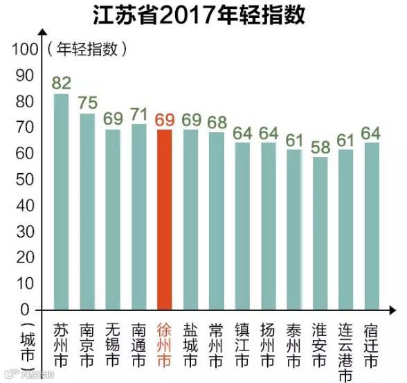 QQ大数据近日发布的《2017全国城市年轻指数》报告中,徐州的年轻指数排名江苏第五。报告显示,徐州的指数为69,同比2016年的68,徐州年轻指数上升1位。