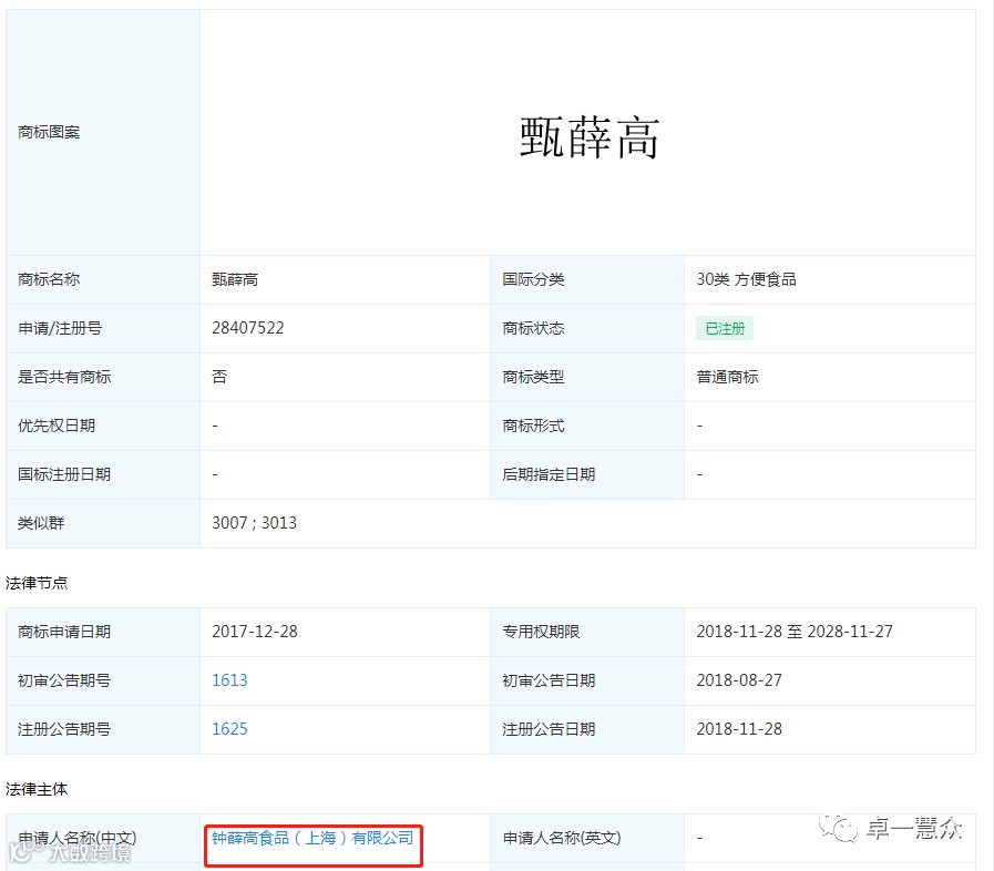 看到这,是不是就明白钟薛高背后的深意了。没错,钟薛高此举就是以“钟薛高”商标为核心,注册多个防御商标,从而避免出现傍名牌、打擦边球的情况。