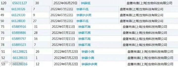 中国商标网显示,近日,钟薛高全资持股的盘箸有喜(上海)生物科技有限公司申请注册多个“钟薛低”“钟薛不低”“钟薛不高”“钟薛小高”“钟薛步步高”商标,涉及方便食品、啤酒饮料、教育娱乐、广告销售等45个国际分类。