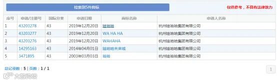 其实只要翻看一下娃哈哈商标的布局,不难发现娃哈哈集团早在很早之前已经提前注册了相关商标,而且是多行业多类别布局注册。