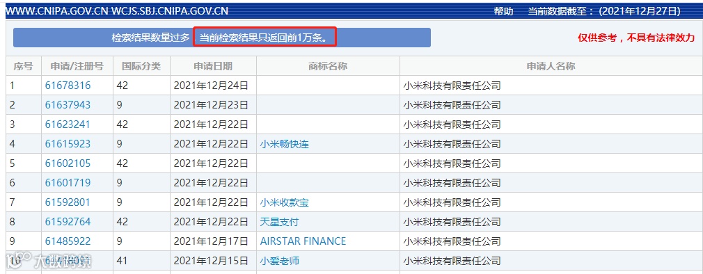 从网上数据来看,小米公司创立的这十年间,注册了1万多个商标,算下来也就是平均每天都会布局2-3个商标!