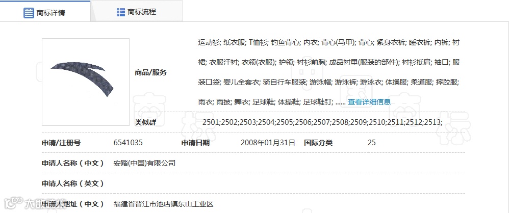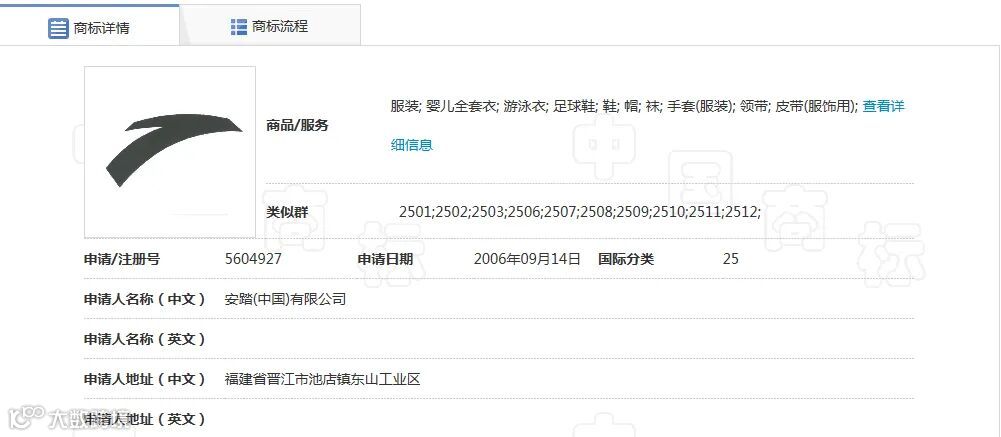 据查询中国商标网发现,安踏(中国)有限公司先后在2006年、2008年申请注册了2件图形商标,核定使用范围为第25类服装等。此后,安踏连续两次成为中国奥委会官方合作伙伴。