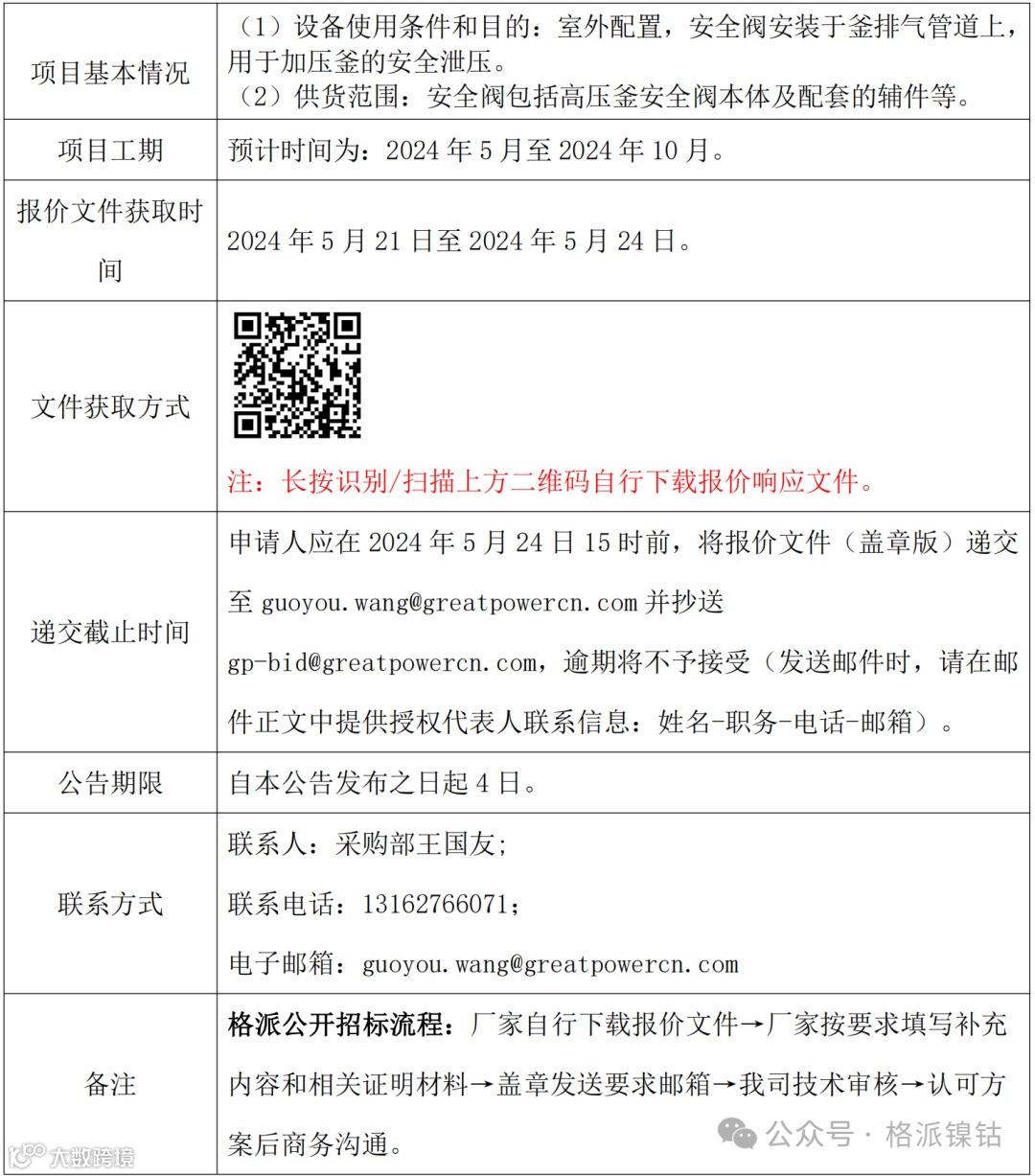 我司釜安全阀设备项目已具备条件现进行公开询价,特邀请有意向的潜在投标人发出邀请。