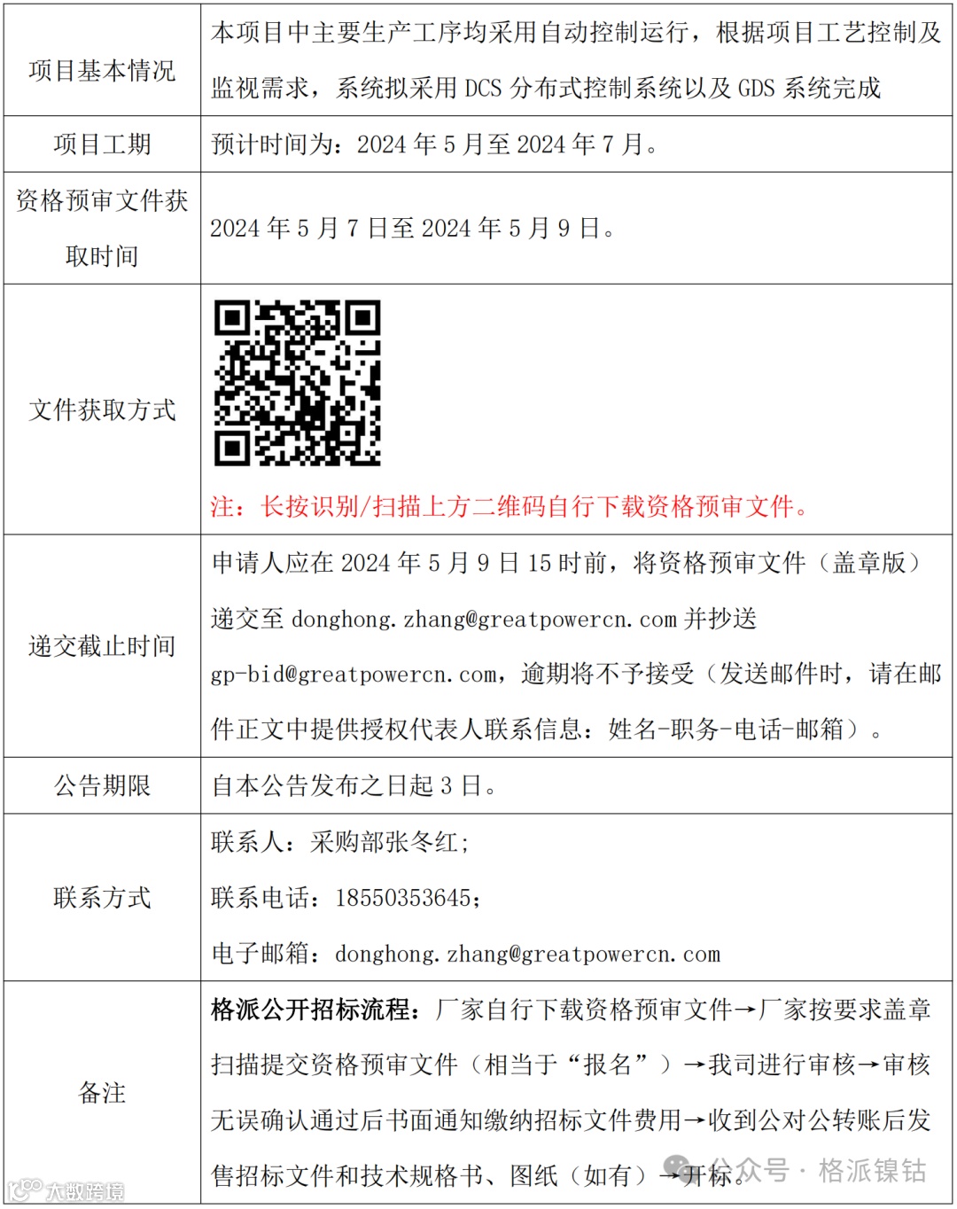 我司原安徽格派DCS系统项目供货范围变更,现变更为自控系统整合项目。现自控系统整合项目已具备条件现进行公开招标,特邀请有意向的潜在投标人提出资格预审预审申请。
