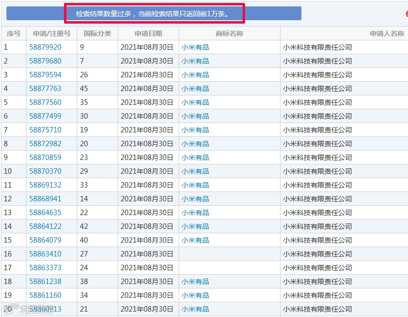 根据卓不凡检索发现,小米公司共申请注册了1W+的商标,尽管核心商标、防御商标申请了一大堆,可近几年小米碰到的商标问题林林总总加起来不下十起。