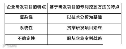 表1 企业研发项目的特点与专利挖掘方法特点对比表