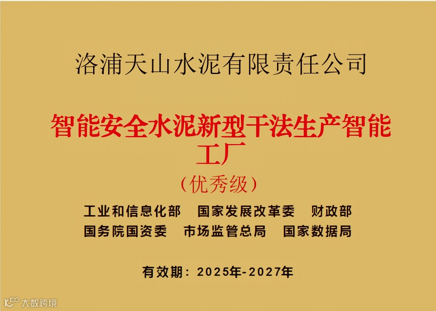 01 洛浦天山荣获“智能安全水泥新型干法水泥生产智能工厂”荣誉称号