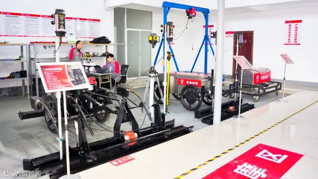 为了最大限度避免人工操作的局限性,混凝土施工场景正引入越来越多的机器帮手。例如,混凝土激光摊铺机可以实现人工施工难以达到的超高平整度和施工效率。该设备借助激光发射器产生一个精准的水平基准面。该基准面如同一个无形的“水准仪”,为混凝土摊铺提供精确的标高参照。