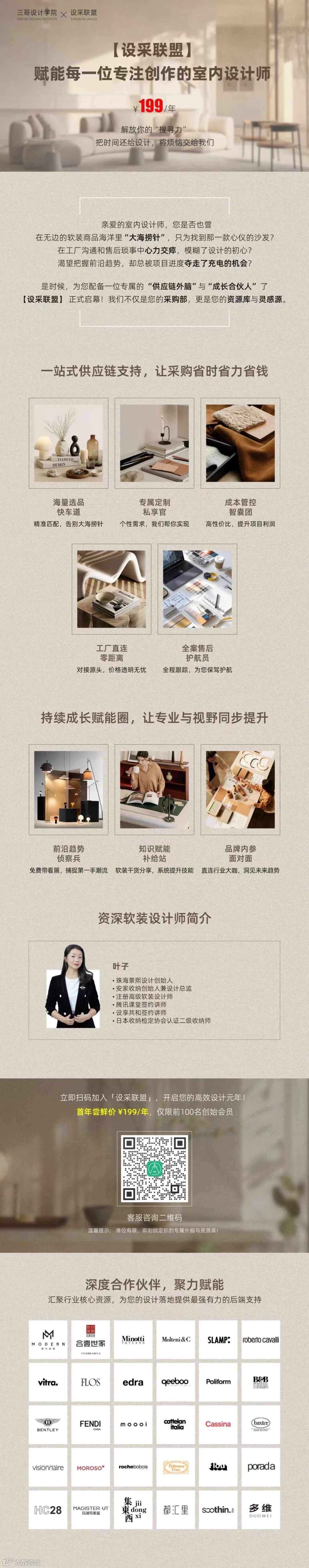 这就是设采联盟的魅力所在。它不仅仅是一个采购平台,更是设计师们的梦想助力器。现在,只需扫描下方二维码,即可加入设采联盟,开启您的高效设计元年!让我们携手共进,在室内设计的道路上创造更多的精彩!