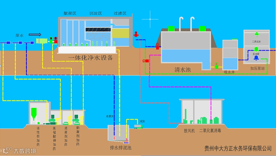 占地面积小:比传统水厂的建设用地减少60%以上, 最多需要传统水厂面积的一半即可建成。