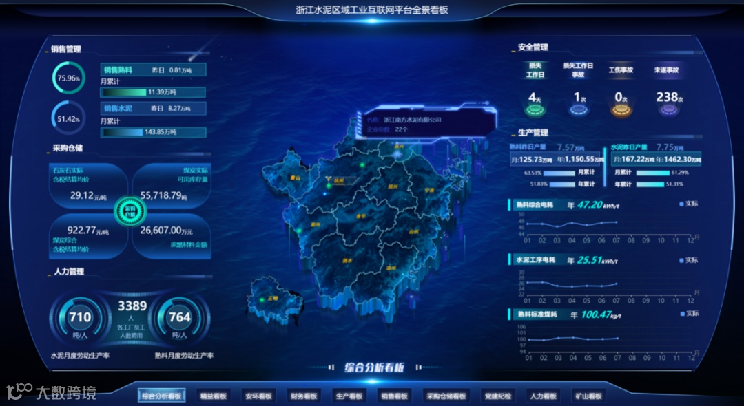 浙江水泥区域工业互联网平台全景看板
