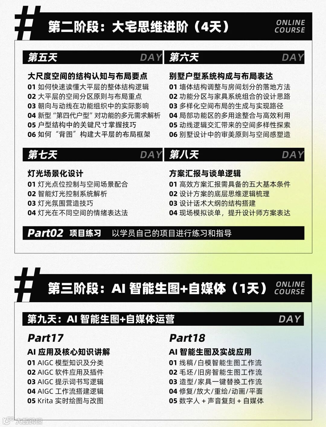 这次,我联合AI设计壹墨老师,把“方案优化硬功夫”和“AI提效黑科技”打包,推出9天9晚线下小班陪跑课,限招10人!既能让你吃透方案优化逻辑,又能玩转AI智能生图+自媒体,一次学习,解决方案、谈单、流量三大难题!
