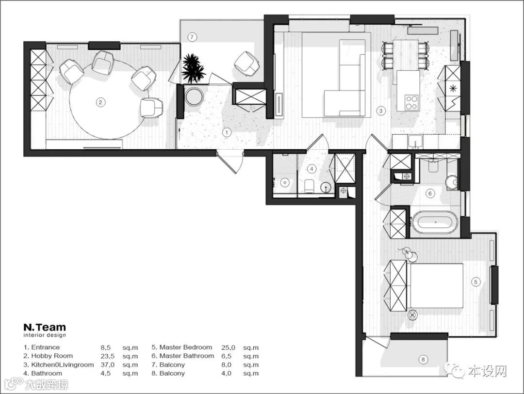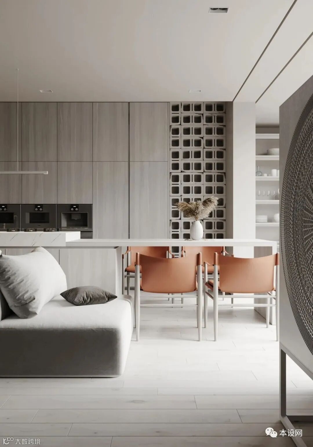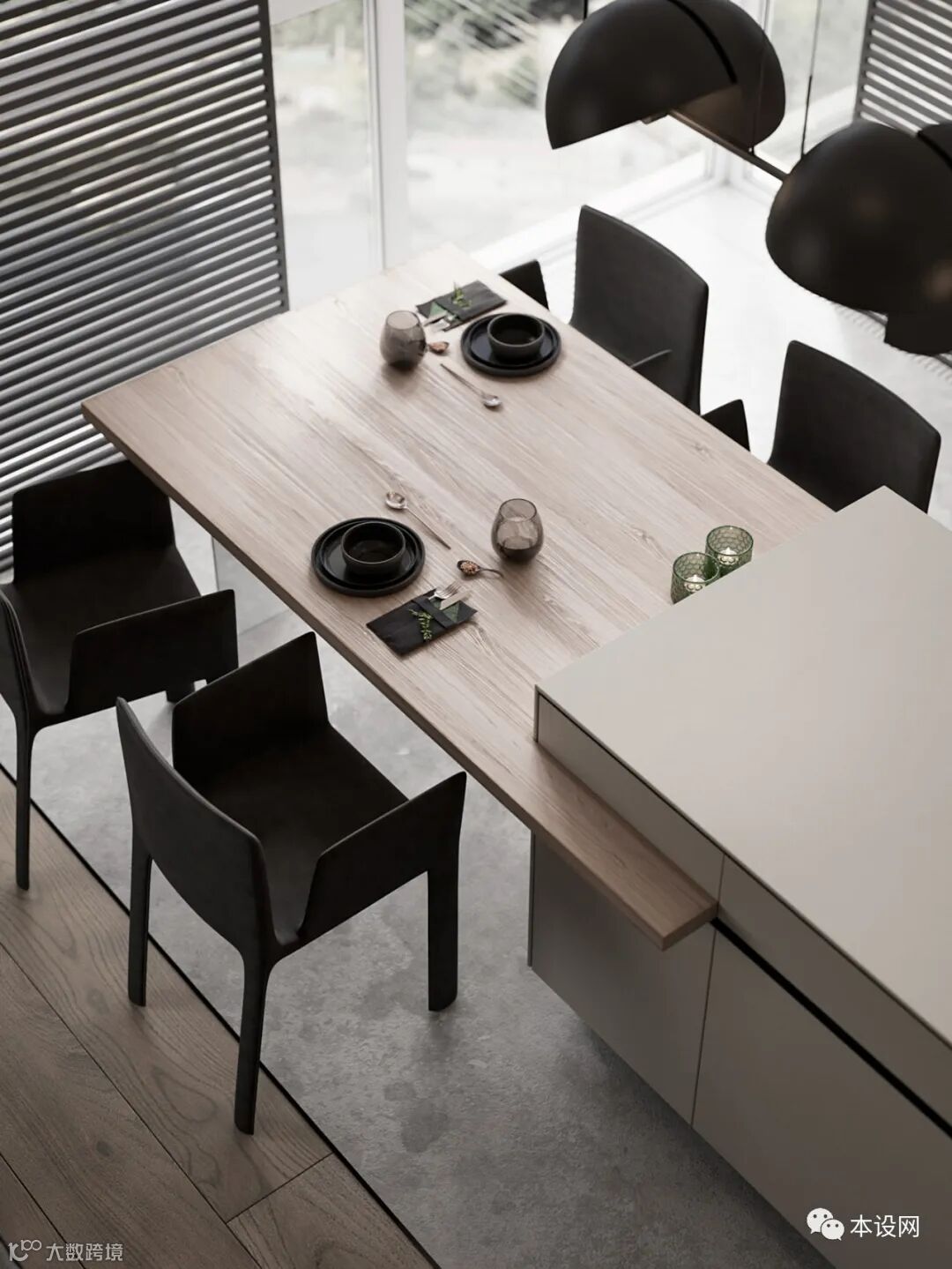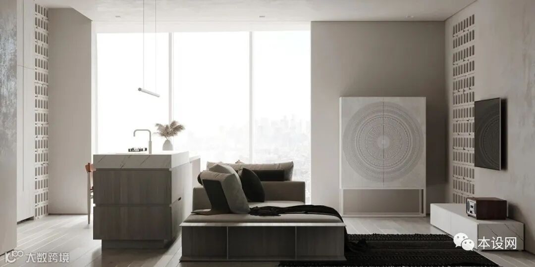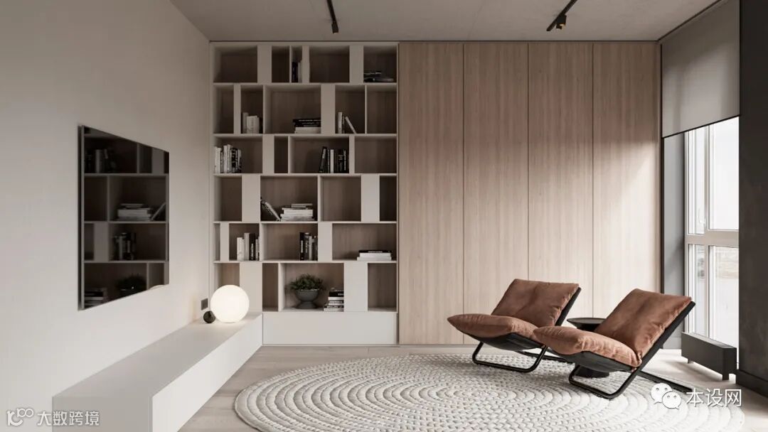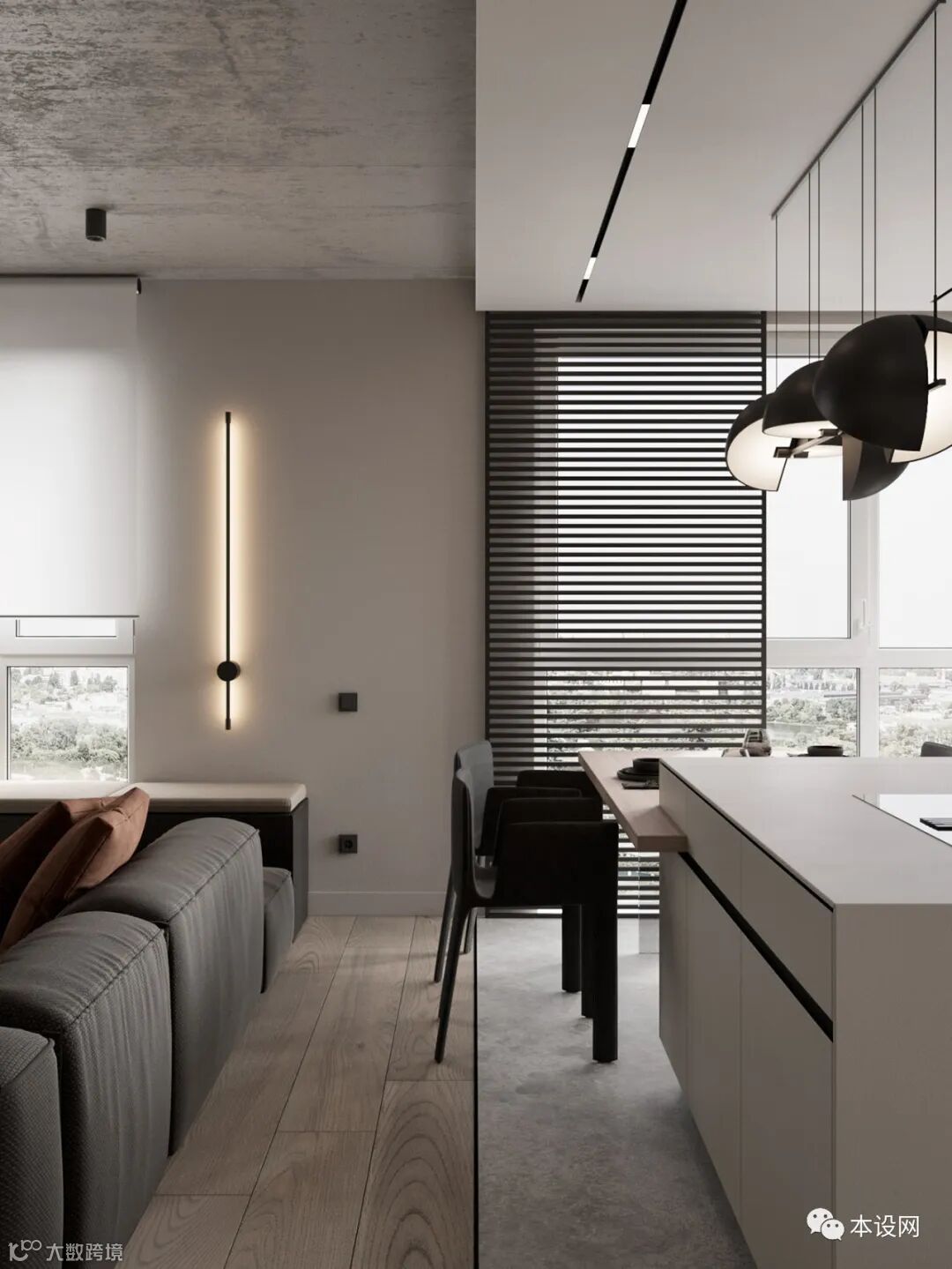 黑白灰是极简风最常用的色系,通过对三种颜色比例的控制