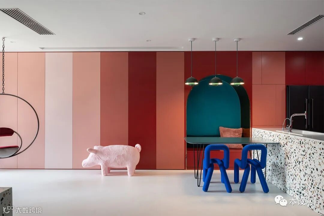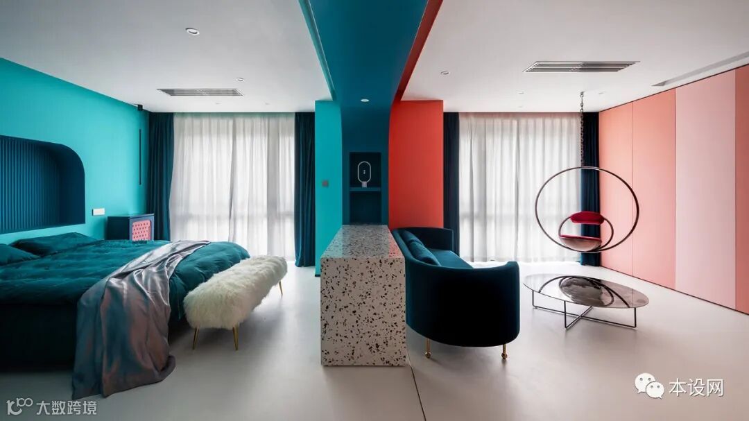 可以选择冷色系点缀,但要注意选择低饱和度的色彩