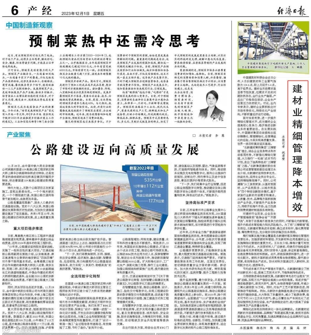 面对当前形势,进一步提升精细化管理水平,成为建材企业提高核心竞争力、稳步推进创新业务的重要途径。在长期实践中,中国建材集团总结提炼出组织精健化、管理精细化、经营精益化的经验,为其实现高质量发展、世界一流目标奠定坚实基础。