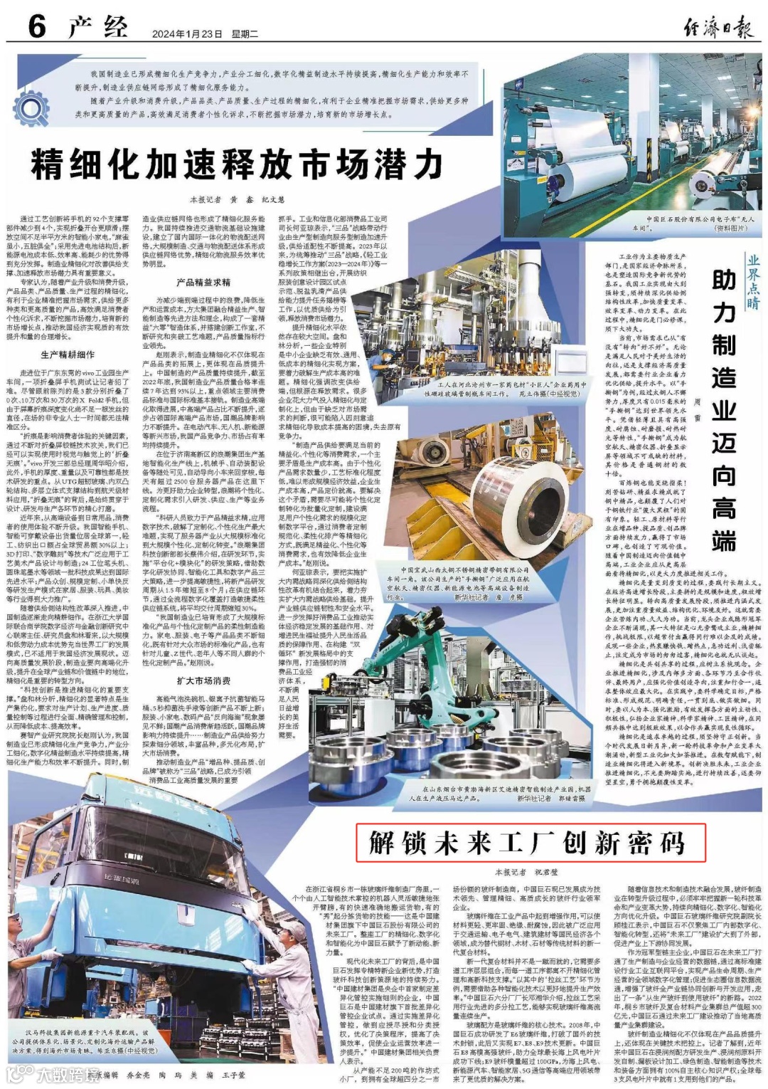 玻纤制造业精细化不仅体现在产品品质提升上,还体现在关键技术把控上。记者了解到,近年来中国巨石在浸润剂配方研发生产、浸润剂原料开发自制、漏板设计加工、绿色制造、智能制造等技术和装备方面拥有100%自主核心知识产权;全球每3支风电叶片中就有1支用到他们的产品。