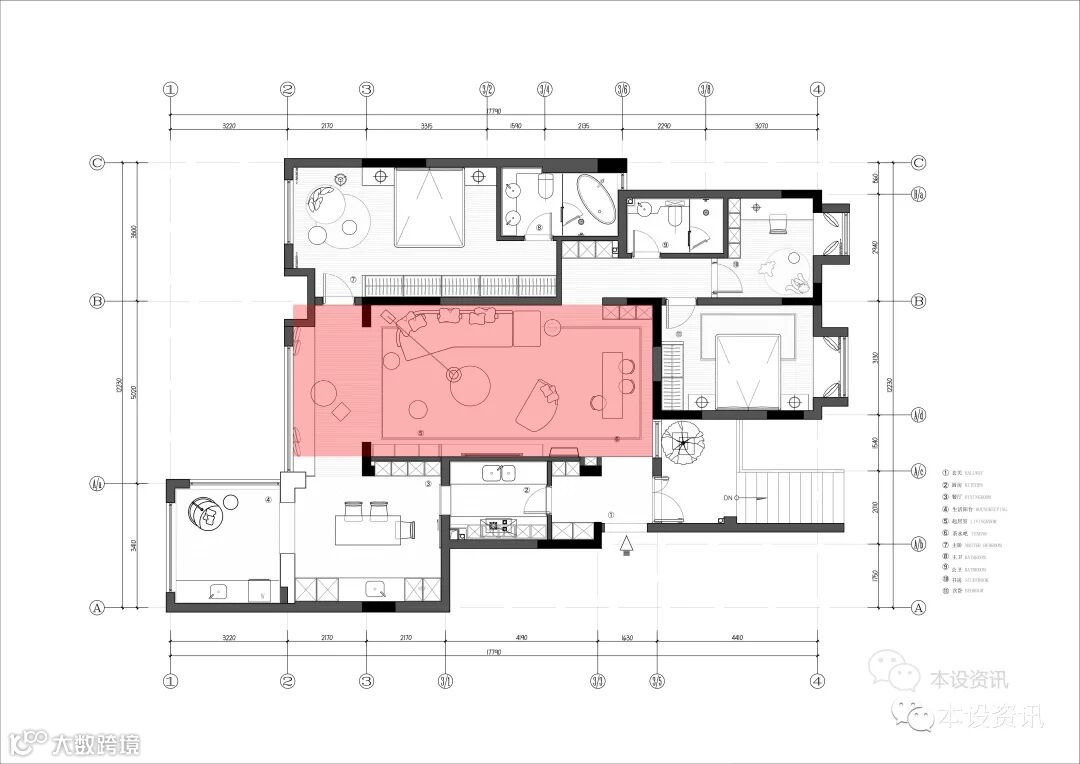 破解三:重新进行空间的板块划分,找出更多的空间可能。休闲、交流、观影、品茗,即保证了空间的功能和空间的开阔,又增加了空间的使用功能。
