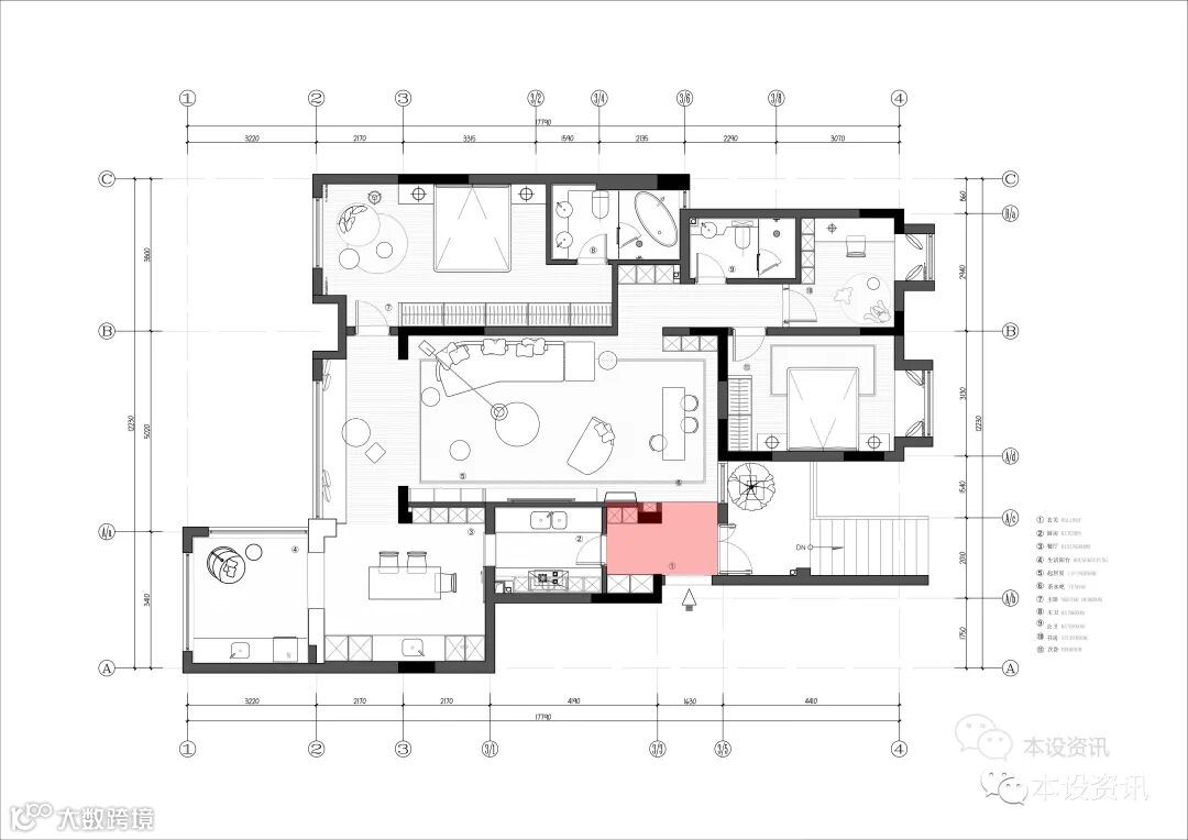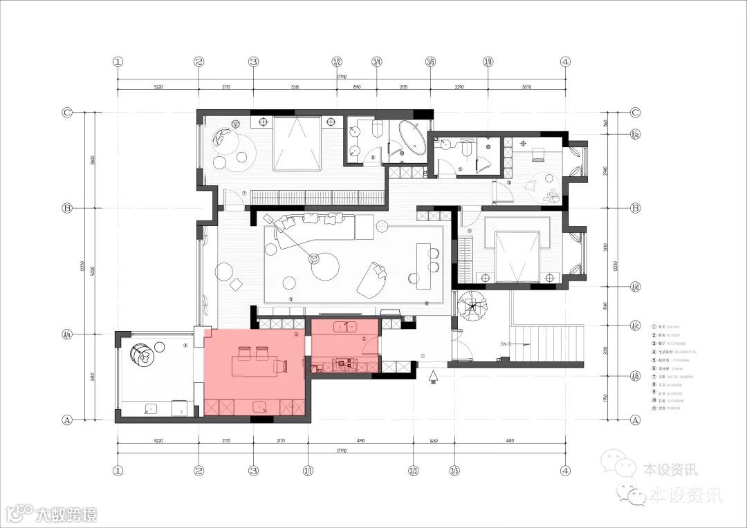 破解二:重新界定空间,分解空间功能,设置中西厨,同时拥有了独立的餐厅空间。
