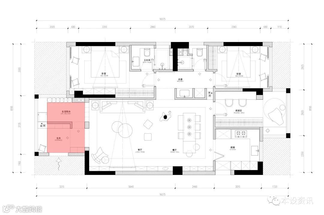 问题一:进门是一个超大的阳台,采光虽好,空间却显得浪费。