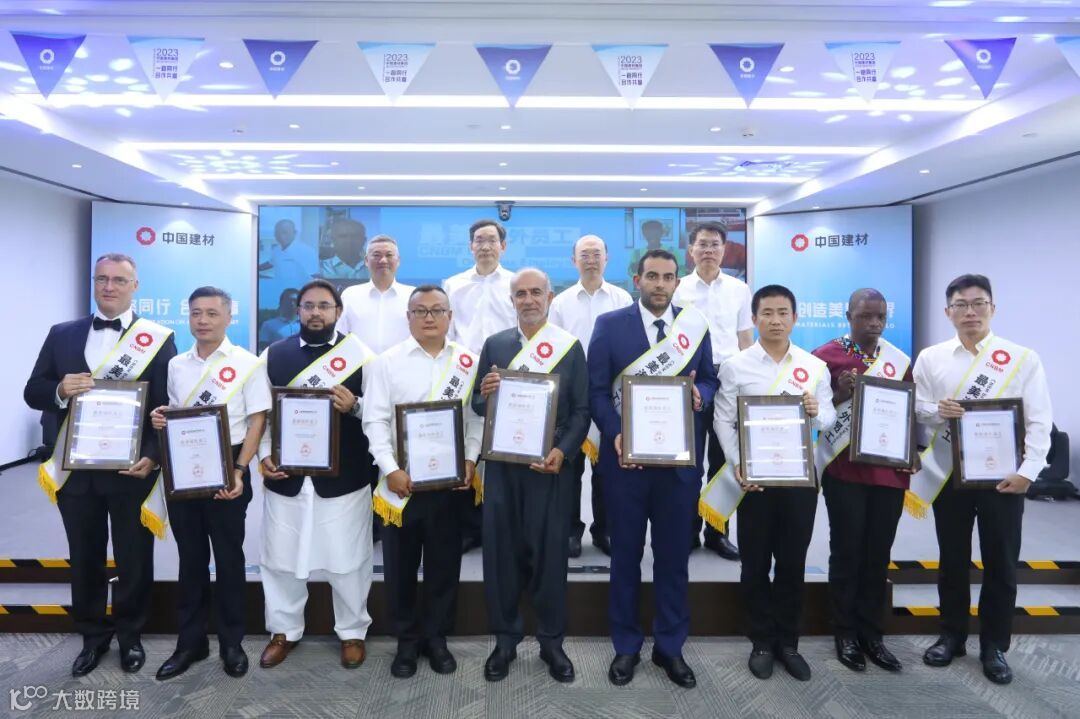 启动仪式上,周育先现场连线北新建材乌兹别克斯坦年产4000万平米石膏板生产线,与项目经理交流海外项目建设情况,并宣布项目正式点火;现场连线中材国际印度尼西亚东加里曼丹一期年产400万吨水泥项目,与当地海外员工亲切交流,见证海外项目开放日活动同步启动。周育先、常张利、印志松、中材国际党委副书记蒋中文为中材国际境外员工专项帮扶资金揭牌并注入首笔资金,还共同为荣获集团“最美海外员工”的9位代表颁奖。