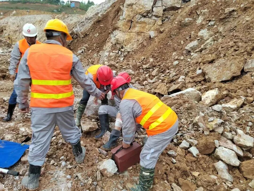 泰和南方在黄岗石灰石矿举行边坡坍塌事故应急救援演练活动。