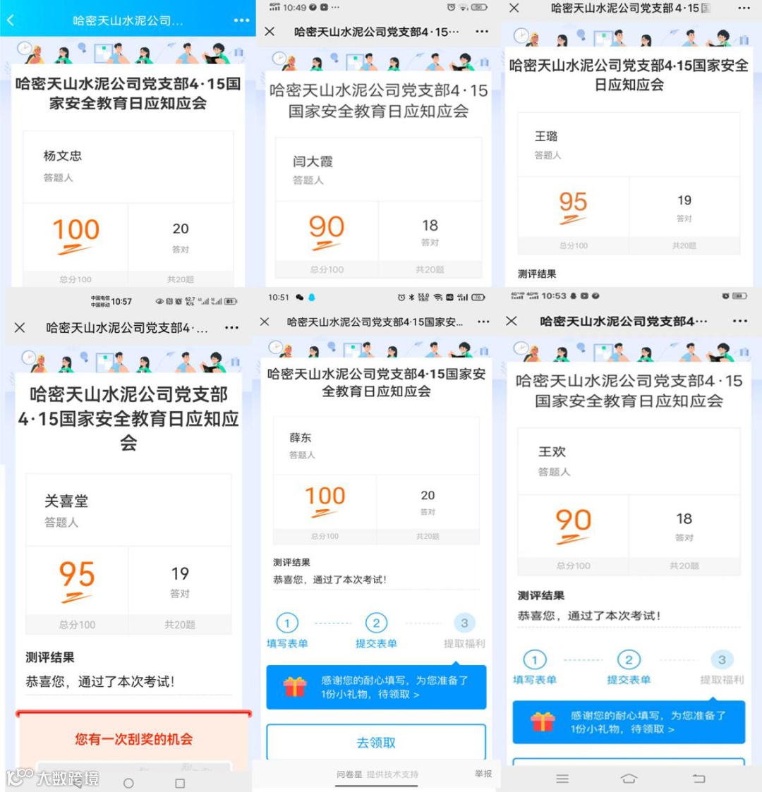 哈密天山党支部开展4.15国家安全教育日应知应会在线答题活动,增强全体干部职工安全意识和法治意识。