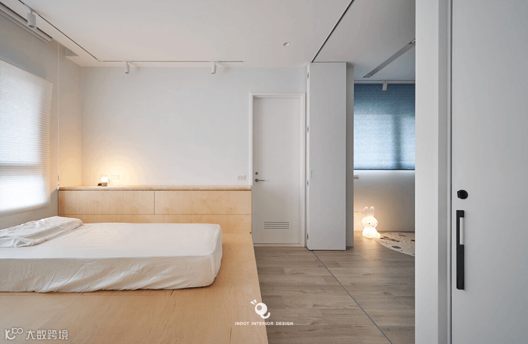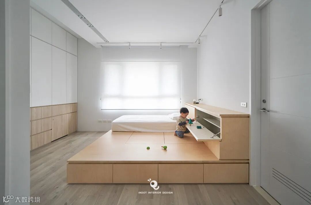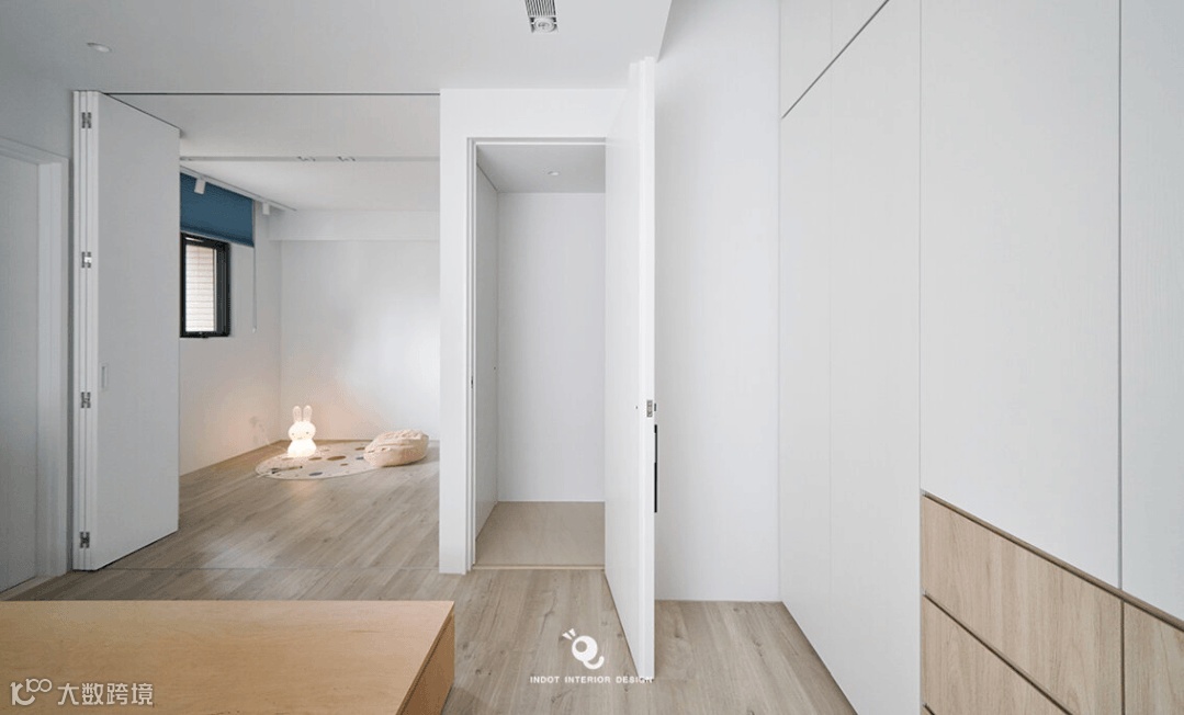 So can be used together for husband and wife and children, on the one hand, considering the children are still small, currently used to sleep together, on the other hand, I hope the space scale can be more open, so the activity folding door design as the medium with children room area. Wait until the child is big, on dimensional planning, can need to increase furniture or functional planning at that time.