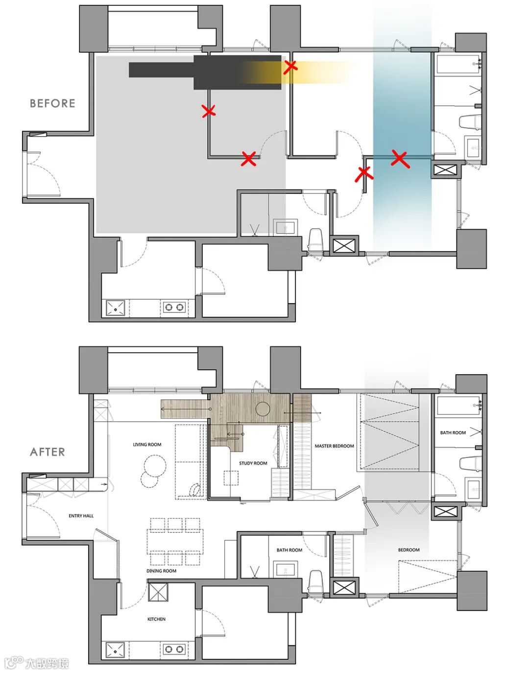 减化设计的语言与材料,让居住者透过生活的体验与空间对话,“我们认为设计就是一种生活态度,而空间不应该只是一个盒子的包覆而已,我们用建筑人的眼光不断尝试打破制式空间的框架,增加人与人在空间中的互动。”郑明辉总监说。