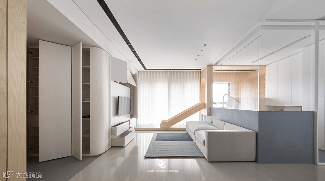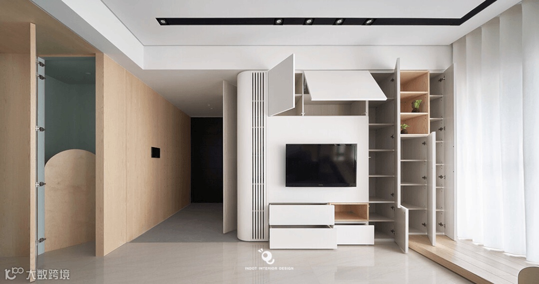 With movable furniture planning, do not do too much display arrangement, through the cabinet body, slide customized design, to meet the needs of storage and life.