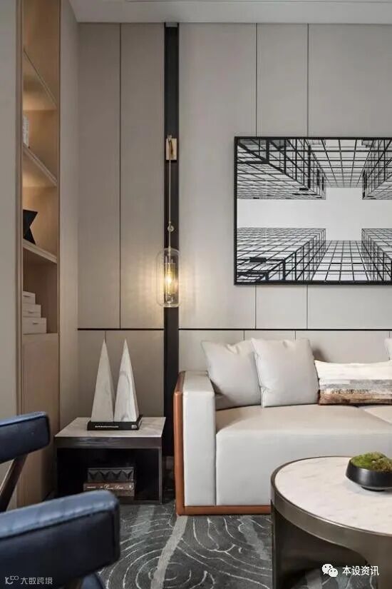 通过硬包的V型拼缝,产生光影变化,强调了块面关系