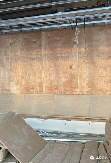 造型金属板,起到装饰作用的同时,解决壁灯和机电面板安装