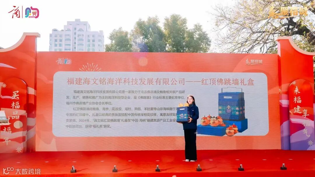 活动现场,海文铭红顶佛跳墙作为福建福品的优秀代表登上舞台,和聚春园、尚飞制衣、春伦集团、福酒股份、文儒九号、京云墨上、厦门传科、月记窑等品牌一同亮相,向市民和游客展示福建福品的优秀品质、创新动力和品牌力量。