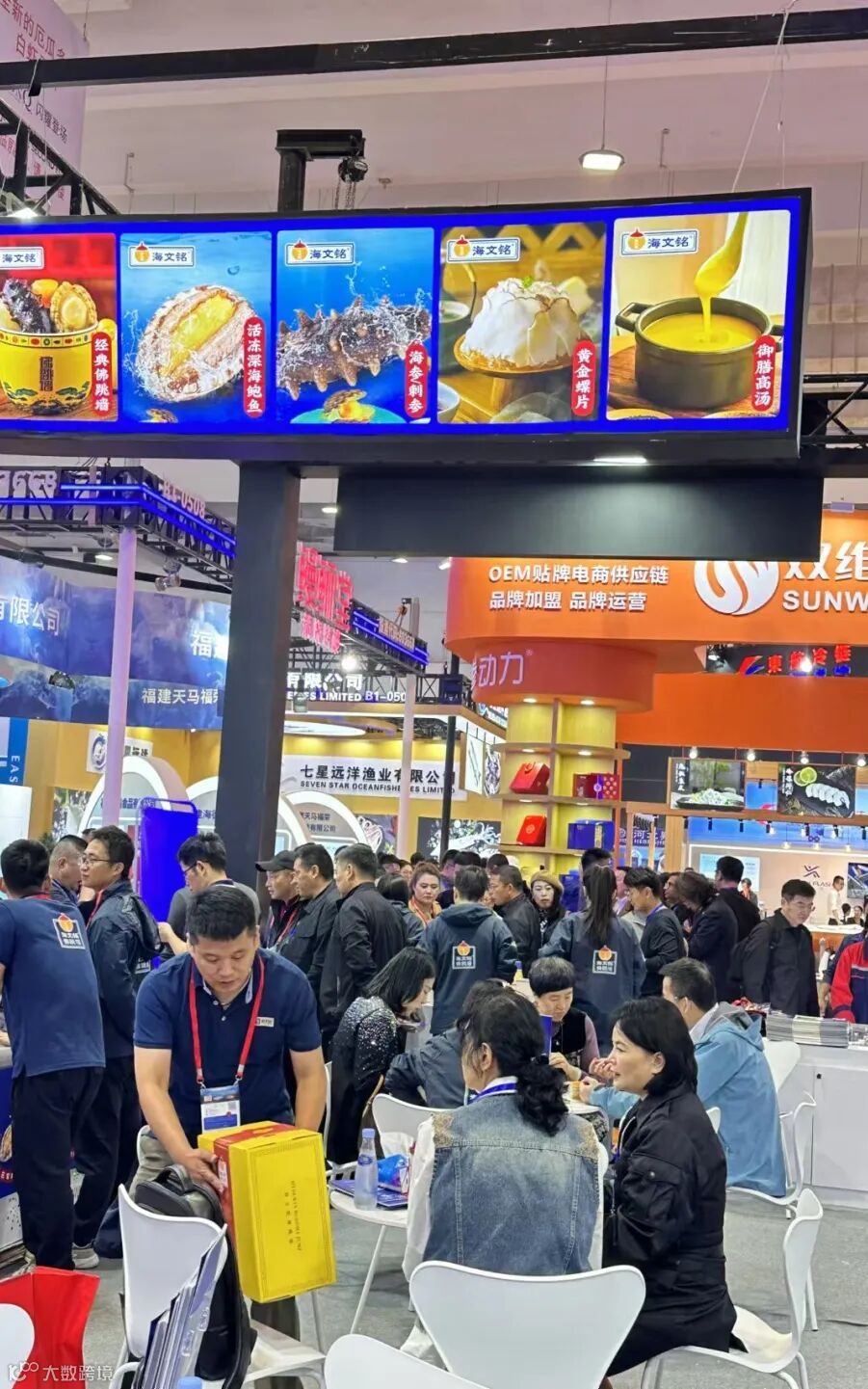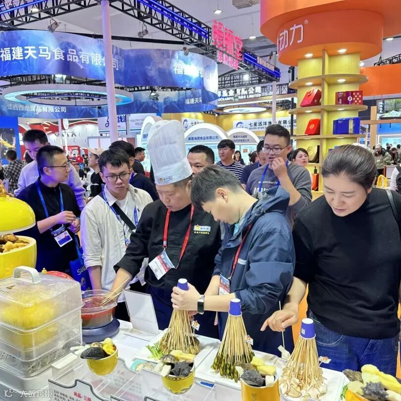 此次参展,海文铭不但带来了深受消费者喜欢的佛跳墙产品,同时也向全球的水产供应商和采购商伙伴展示了鲍鱼、海参、螺片、花胶等主力原料型产品,其中不乏今年新推出的品相。鲍鱼、海参、螺片、花胶等原料产品在现场,海文铭产品推荐官的手中被制成一道道精美的菜品,瞬间便成为了展区的焦点。