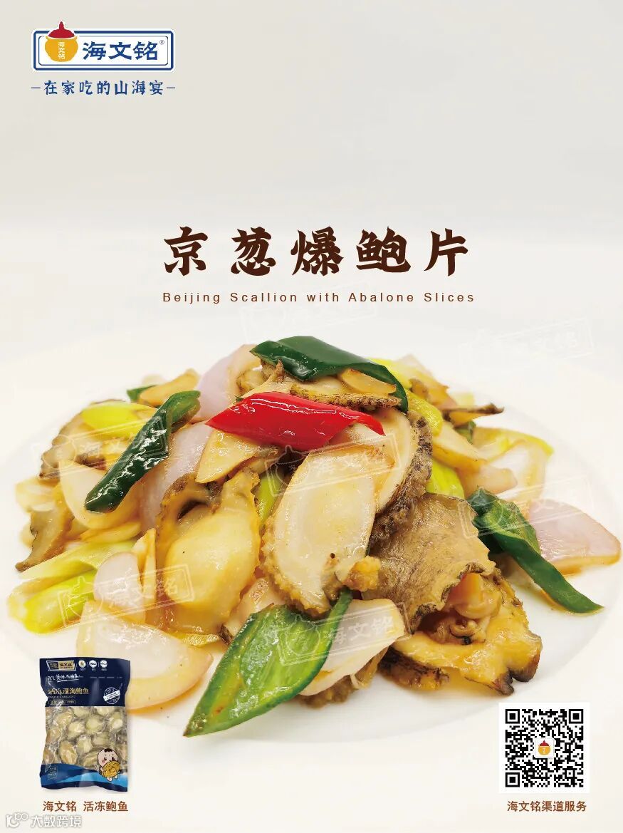 产品特点:来自福建平潭海域的鲍鱼Q弹鲜甜,咸鲜味美、葱香浓郁。