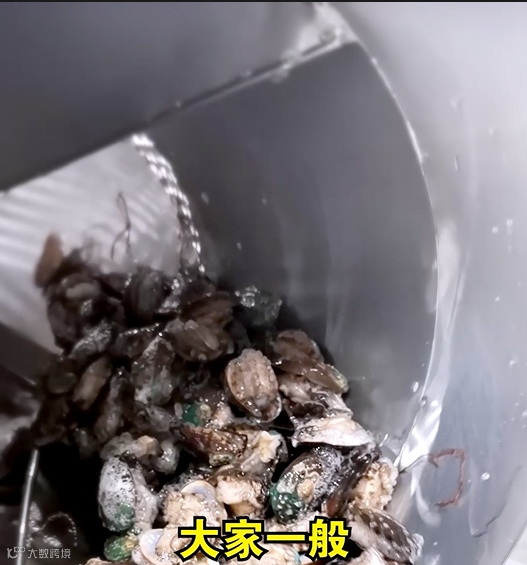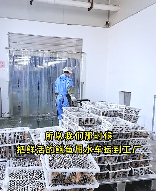 新鲜鲍鱼,通过水车运到工厂,按大小进行分拣