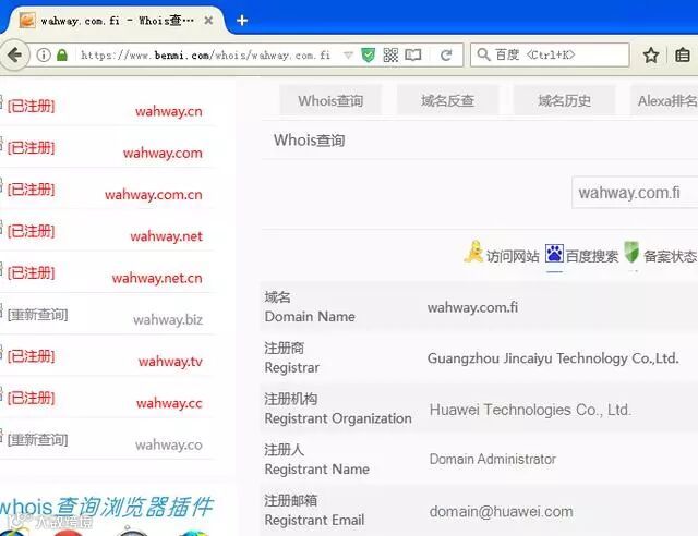 在媒体刚刚曝出华为更名的消息后,一些灵敏的投资人就迅速的注册了与华为“新名字”Wahway相关的系列域名,包括Wahway.cn/.com.cn/.net/.cc/.co等多个后缀都在昨日被注册,不过最主流的Wahway.com则早在2006年就已被注册。