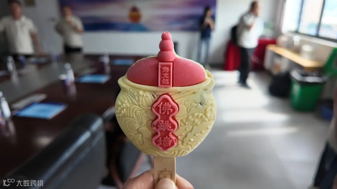 最后,访问团现场品尝了以佛跳墙高汤为基底创新研发的佛跳墙文创冰淇淋。传统闽菜和西方美食冰淇淋的创意组合,让到场的来宾们赞叹不已,让大家进一步感受到传统美食与现代消费场景的结合创新。