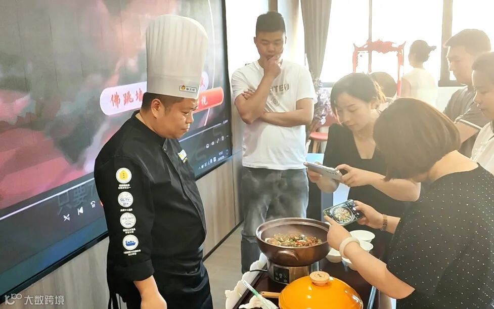店内满壁的佛跳墙容器吸引了参访团的目光,从憨态可掬的传统和尚瓷罐,到经典明黄色彩绘罐装,极简禅意坛型,再到红顶佛跳墙的尊贵宫廷风尚,海文铭企业的匠心匠意不仅体现在严苛的制作工艺上,在包装上也是紧随时代步伐,在尊重传统元素的基础上大胆创新,突出质感,并借此对品质不一的福州佛跳墙做出相应的层级区分,让消费者一目了然。