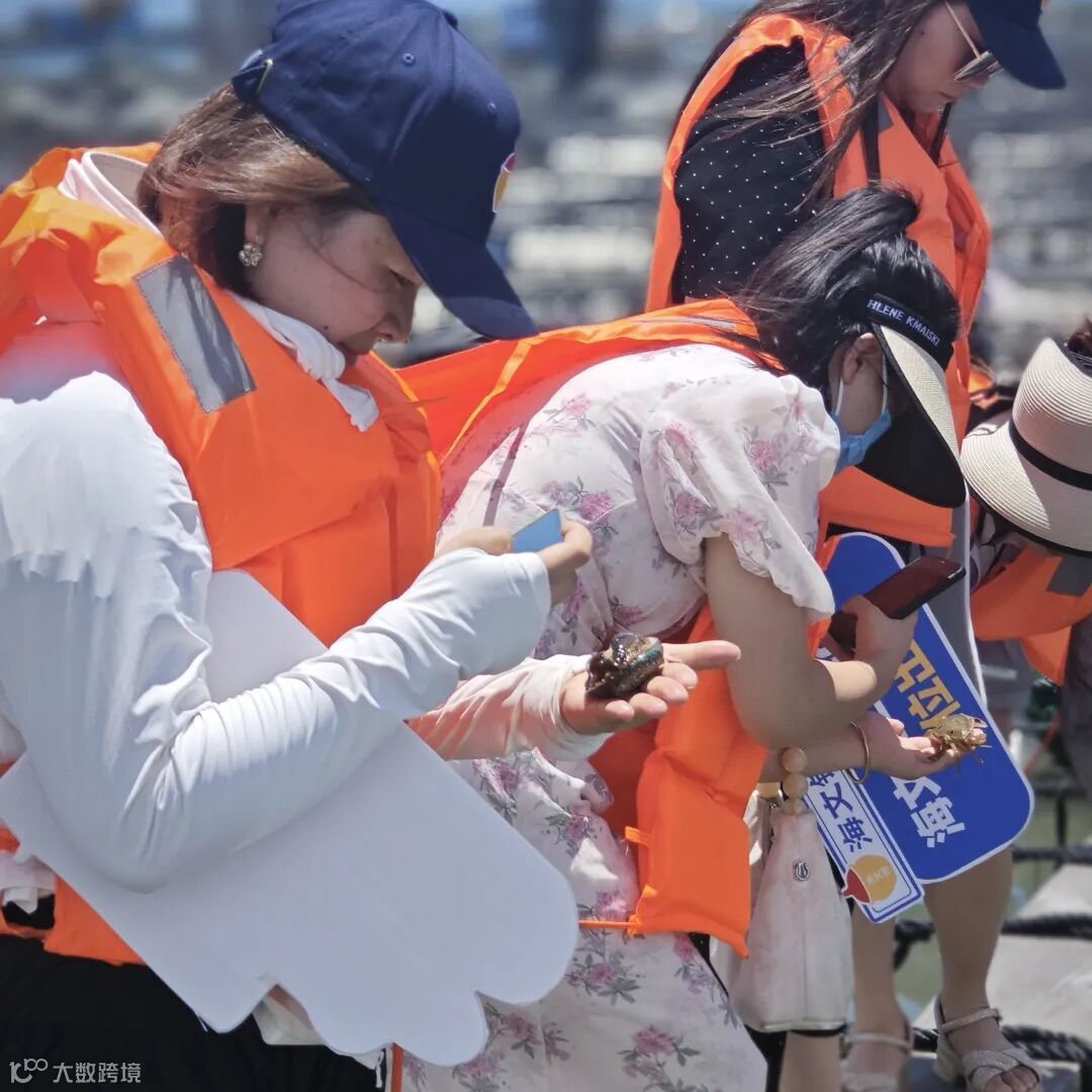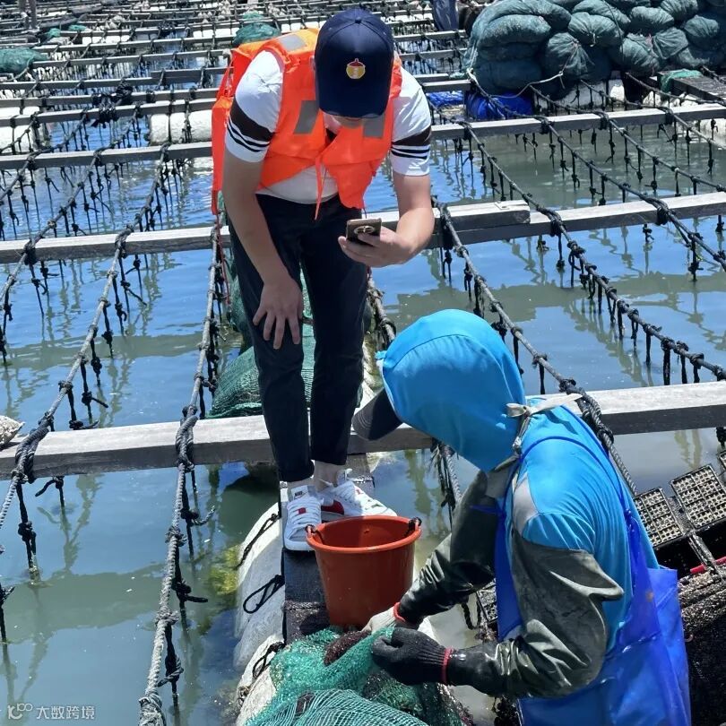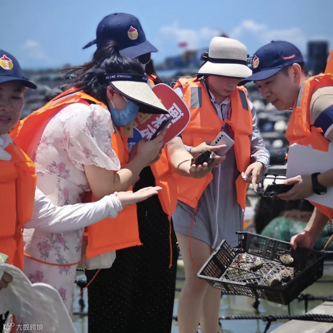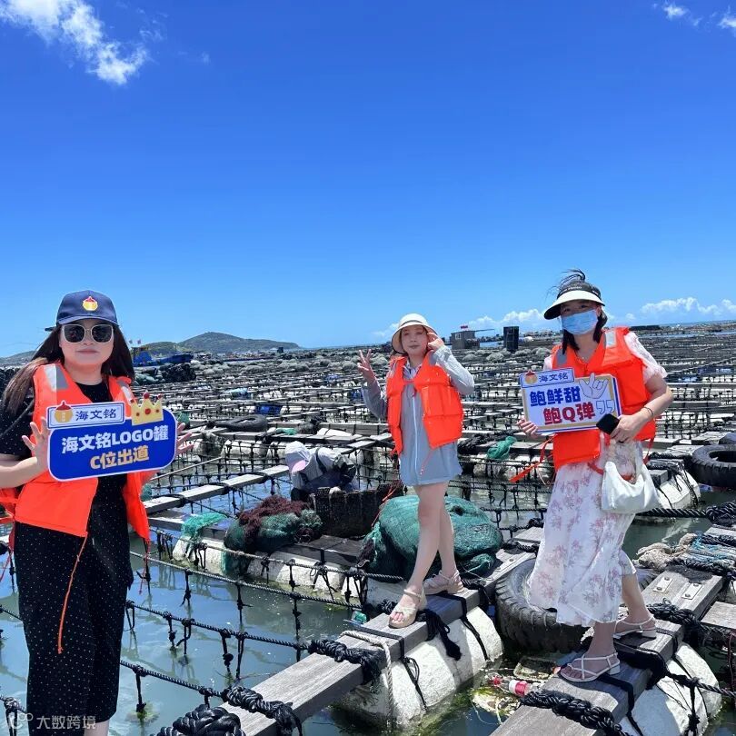 鱼排上,参访团一行近距离观察了鲍鱼的外观与活力,同时,通过海文铭高攀经理介绍鲍鱼的养殖过程以及捕捞后争分夺秒的处理方式,加深了对海文铭好鲍鱼背后故事的理解。
