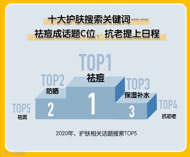 数据显示,“祛痘”打败“防晒”和“保湿补水”,成为2020年网友们最热搜的护肤话题,抗老也提上了日程。