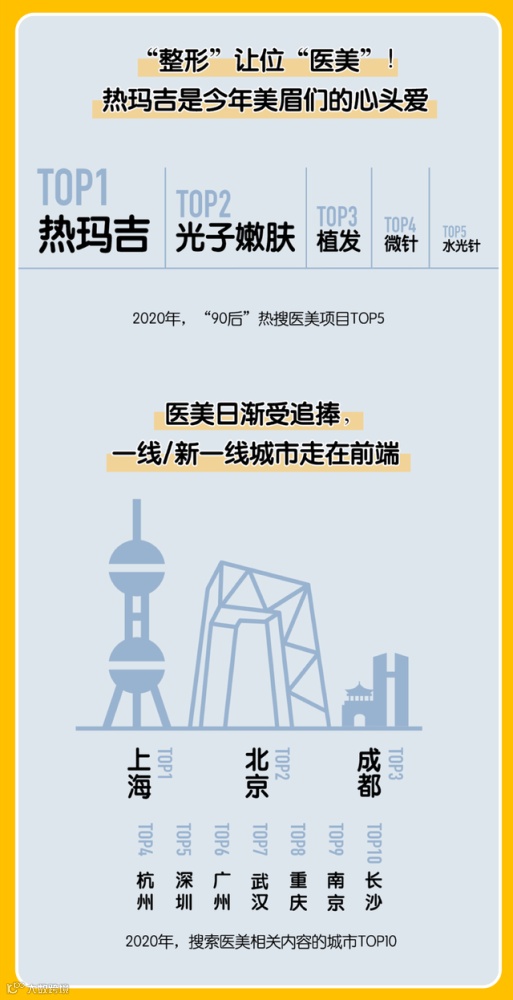 除了上海、北京等一线城市敢于“尝鲜”医美项目外,成都、杭州、武汉等新一线城市均对医美有所关注。