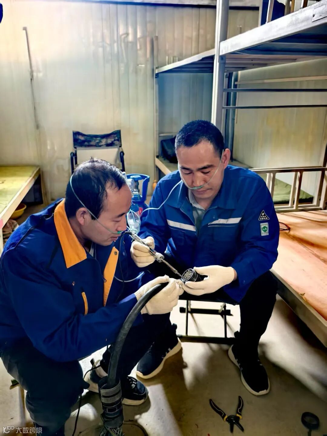 高原地区空气稀薄,含氧量低,早晚温差大,气候变化多端,正所谓“一日分四季,十里不同天”,时而烈日炙烤,时而风雪交加。突击队员们刚抵达驻地,张建鹏和刘志斌2人便遭遇强烈高原反应,头痛欲裂、胸闷气短、血氧浓度骤降、失眠等症状突如其来。电站系统负责人刘志斌、郑海军强忍不适,带头爬上油机排查故障,难受时仅靠间歇吸氧维持状态。面对装备故障与生命禁区的双重夹击,队员们以钢铁意志为矛,以精湛技艺为盾,无一人退缩。