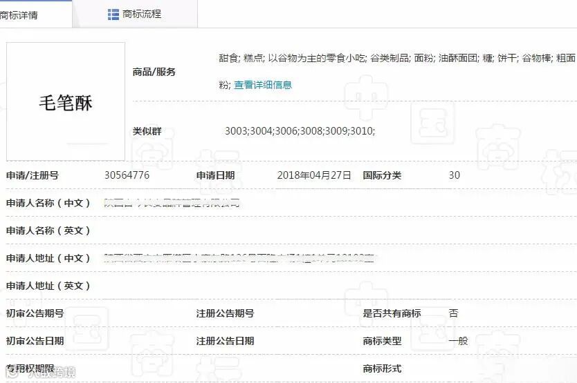 “毛笔酥”申请商标被驳回